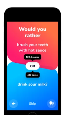 Pasinerkite į intriguojantį pasirinkimų pasaulį su "Dilemmaly - Would You Rather?", žaidimu, kuris kviečia į smagius debatus ir netikėtas įžvalgas. Nesvarbu, ar ieškote pramogos vieni, norite užmegzti pokalbį su draugu, ar įsukti visą grupę į gyvą diskusiją, šis žaidimas puikiai tiks. Tereikia pasirinkti kortelių rinkinį ir pradėti žaisti. Perskaitykite dilemą garsiai, padarykite savo pasirinkimą ir iškart sužinokite, kiek žmonių visame pasaulyje sutinka ar nesutinka su jūsų nuomone. Vėliau perduokite įrenginį kitam žaidėjui ir leiskite linksmybėms tęstis pagal jūsų pačių sugalvotas taisykles.