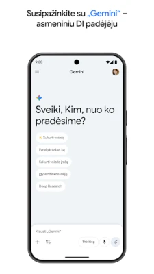 Atraskite naują bendravimo ir kūrybos lygį su „Gemini" – jūsų asmeniniu DI asistentu telefone, kuris suteikia tiesioginę prieigą prie galingiausios „Google" dirbtinio intelekto modelių šeimos. Pasinerkite į intuityvų pokalbį su „Gemini Live", kuriame galėsite dalytis savo kameros ar ekrano vaizdu, ir „Gemini" akimirksniu sureaguos, padėdamas kurti idėjas, supaprastinti sudėtingas temas ar pasiruošti svarbioms akimirkoms. Tai lyg turėti protingą partnerį, kuris mato tai, ką matote. Kūrybai skirtas „Canvas" modulis pavers jūsų vizijas realybe: nuo pirminės idėjos iki prototipo, kurkite programas, žaidimus, tinklalapius, infografikas, garso apžvalgas ir dar daugiau. „Gemini" sklandžiai jungiasi su mėgstamiausiomis „Google" programomis, tokiomis kaip Paieška, „YouTube", „Google" žemėlapiai ir „Gmail", suteikdamas jums galimybę išnaudoti visą „Google" ekosistemos potencialą vienoje vietoje.