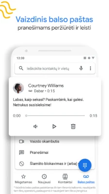 Nepažįstami skambučiai nebetaps galvos skausmu. „Telefono programa" naudoja išmaniąją skambučių patikrinimo funkciją, kuri automatiškai atsako į nežinomus numerius ir filtruoja aptiktus šlamšto siuntėjus, netrukdydama Jūsų. Ji netgi gali padėti sužinoti daugiau apie skambinantįjį prieš Jums atsiliepiant, suteikdama vertingos informacijos. Be to, vizualinis balso paštas keičia tai, kaip Jūs bendraujate su pranešimais: peržiūrėkite juos bet kokia tvarka, skaitykite transkribuotą tekstą ir tvarkykite – ištrinkite ar išsaugokite – tiesiai iš programos, neprivalėdami skambinti į balso pašto dėžutę.