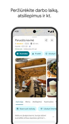 Pasiruoškite kiekvienai kelionei kruopščiai ir be streso. Prieš išvykdami, pasinaudokite „Street View" funkcija ir detaliai apžiūrėkite pasirinktą vietą – nuo automobilių stovėjimo aikštelių iki įvažiavimų. Su „Immersive View" patirkite miestą iš naujos perspektyvos, apžiūrėdami lankytinus objektus, parkus ir maršrutus, netgi patikrindami orų prognozes, kad būtumėte visiškai pasiruošę. Kurkite ir dalinkitės personalizuotais mėgstamiausių vietų sąrašais su draugais ar šeima. Be to, programėlė palengvins jūsų kasdienybę – užsisakykite maisto į namus, rezervuokite staliukus restoranuose ar viešbučius tiesiai iš programėlės. Nesvarbu, ar esate atokioje vietovėje be ryšio, ar tiesiog norite taupyti duomenis, neprisijungus pasiekiami žemėlapiai užtikrins, kad niekada nepasiklysite. Atraskite netoliese esančias lankytinas vietas ir veiklą, priimdami sprendimus, paremtus išsamiais vartotojų atsiliepimais ir nuotraukomis.