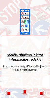 Mūsų programėlė atveria jums prieigą prie milžiniškos duomenų bazės, apimančios daugiau nei 85 pasaulio šalių kelio ženklus, pateikiamus su išsamiais paaiškinimais. Tai leidžia ne tik peržiūrėti ir identifikuoti ženklus, bet ir giliau suprasti jų prasmę bei taikymą įvairiose eismo situacijose. Įgytas žinias patikrinti padės dviejų skirtingų tipų testai, sukurti efektyviam mokymuisi ir gebėjimų įtvirtinimui. Šios praktinės užduotys užtikrina, kad esate pasiruošę bet kokiam iššūkiui kelyje ar oficialiam egzaminui.