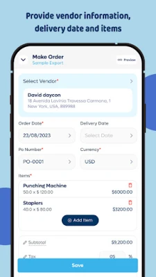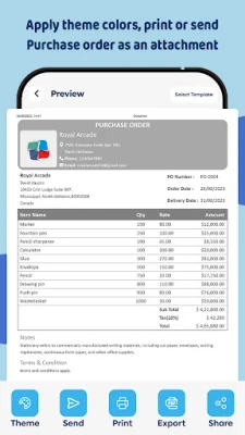 "PO - Purchase Order Generator | PO Creator & PDF Maker" leidžia lengvai kurti ir valdyti pirkimo užsakymus. Greitai generuokite profesionalius pirkimo užsakymus ir konvertuokite juos į PDF dokumentus. Ši programa supaprastina pirkimo užsakymų procesą, taupydama jūsų laiką ir pastangas verslo valdyme.