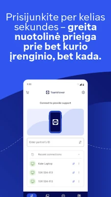 Atraskite naują laisvę dirbti ir valdyti įrenginius nuotoliu su TeamViewer. Ši galinga programėlė paverčia jūsų Android įrenginį universaliu prieigos centru, leidžiančiu saugiai prisijungti prie Windows, macOS ar Linux kompiuterių bet kurioje pasaulio vietoje, lyg sėdėtumėte tiesiai prieš juos. Nesvarbu, ar jums reikia pasiekti biuro darbalaukį, ar prižiūrėti serverius, TeamViewer suteikia nepertraukiamą ryšį ir visišką kontrolę, leidžiančią efektyviai atlikti užduotis keliaujant.